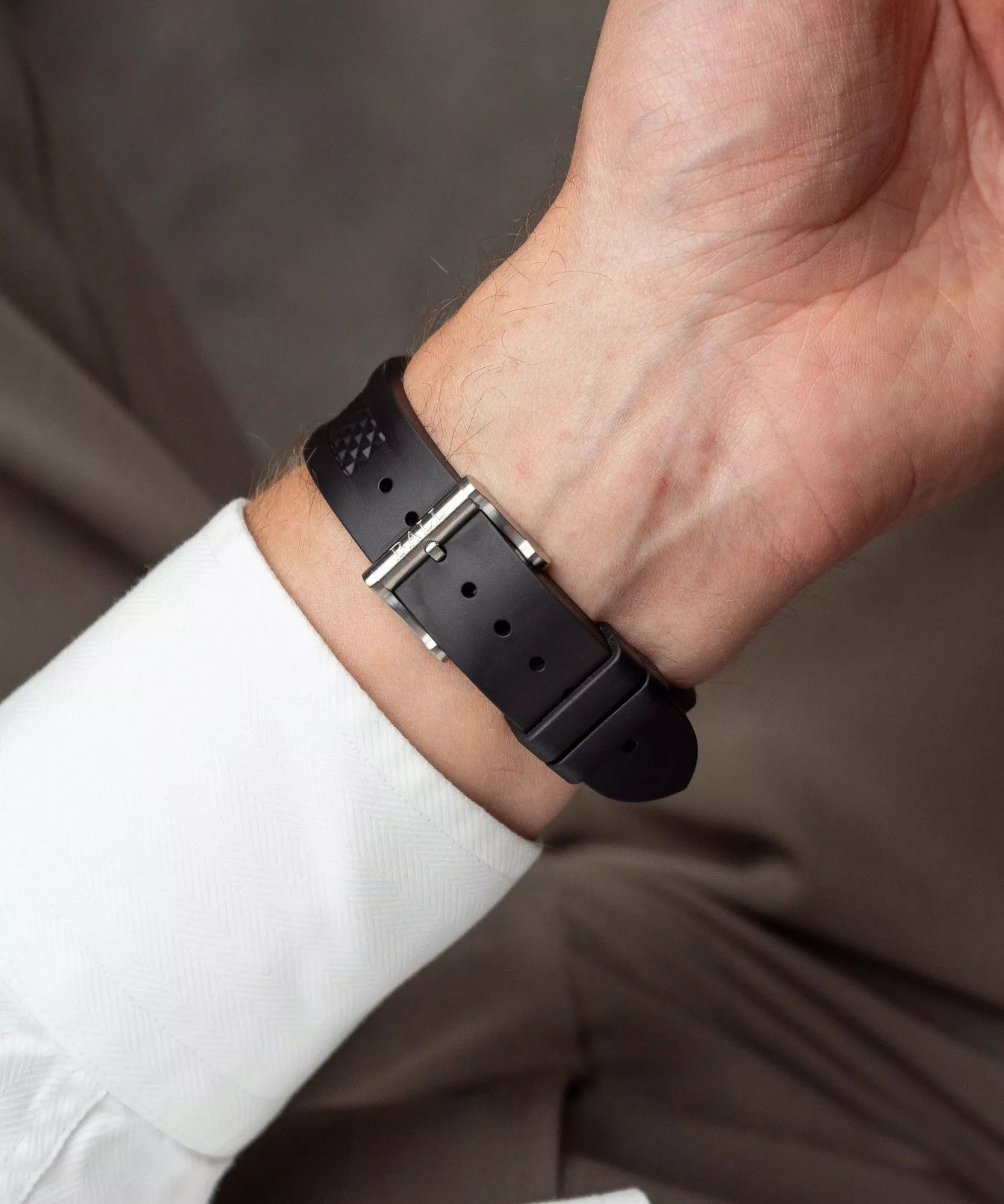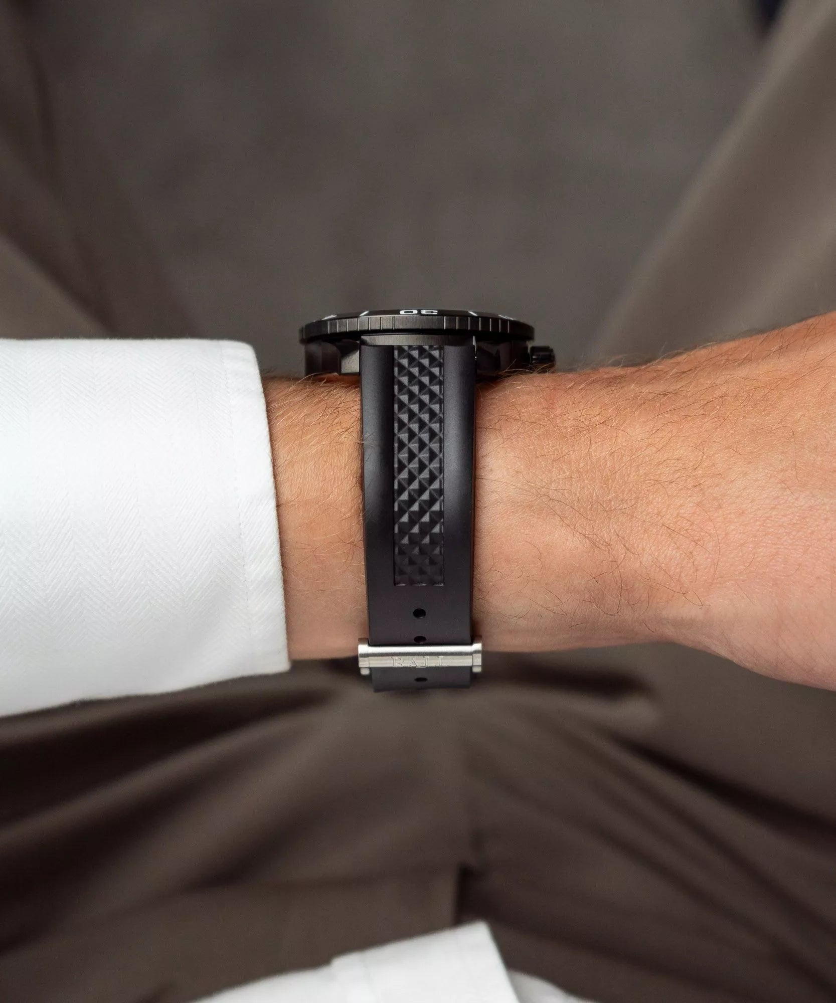 With a transparent case back revealing the automatic Ball Calibre RR1103 movement and water resistance up to 300 meters, this is a serious timepiece for professionals and enthusiasts alike. The durable black rubber strap adds sporty character and all-day comfort, making it a trusted companion on land or sea.