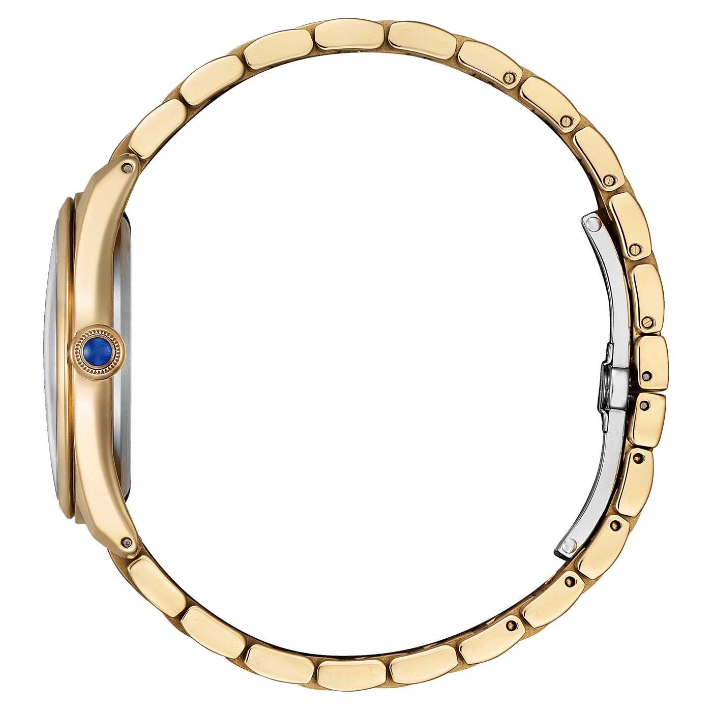 Completed with a deployment clasp, this lightweight, water-resistant timepiece is perfect for casual and everyday elegance.