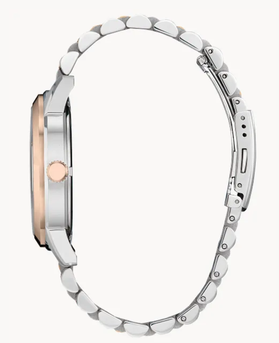 Elevate your style with the Citizen Rolan Eco-Drive Brown Dial Two-Tone Men’s Watch, a timepiece that blends sophistication with modern innovation. Designed with a rich brown sunray dial and a polished two-tone stainless steel bracelet, this watch offers a versatile look that transitions seamlessly from boardroom meetings to evening occasions.