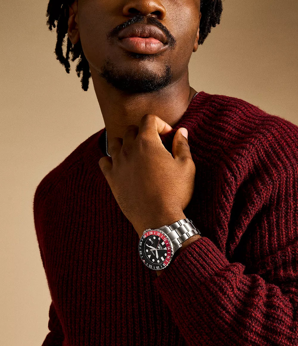 Shop the Fossil Blue GMT Collection at Luxero — a striking combination of precision, functionality, and bold design for the modern man.
