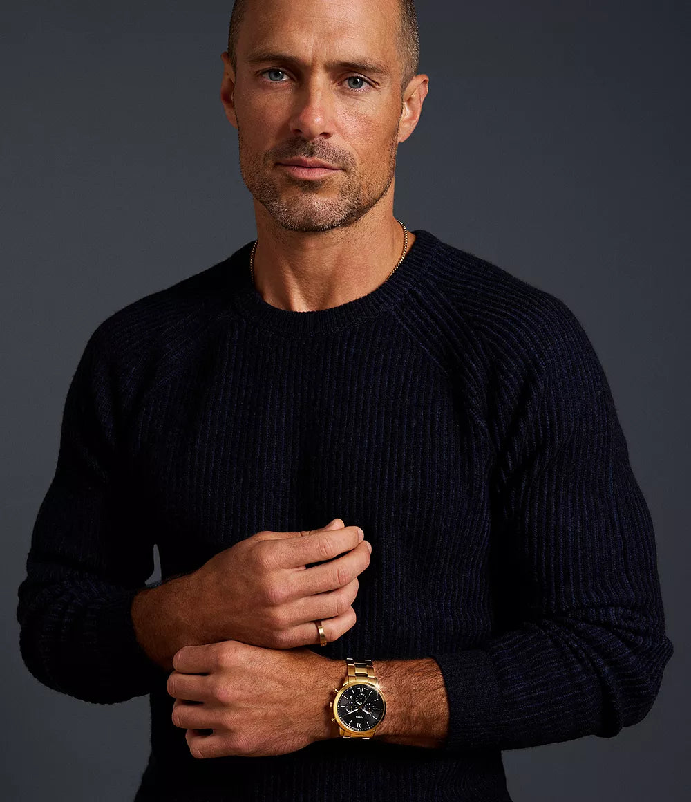 Luxero presents the Fossil Neutra, an elegant chronograph that merges luxury design with practical functionality. With its bold gold-tone finish and refined details, this timepiece is perfect for the modern gentleman seeking both style and precision.