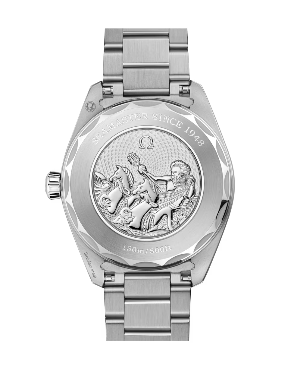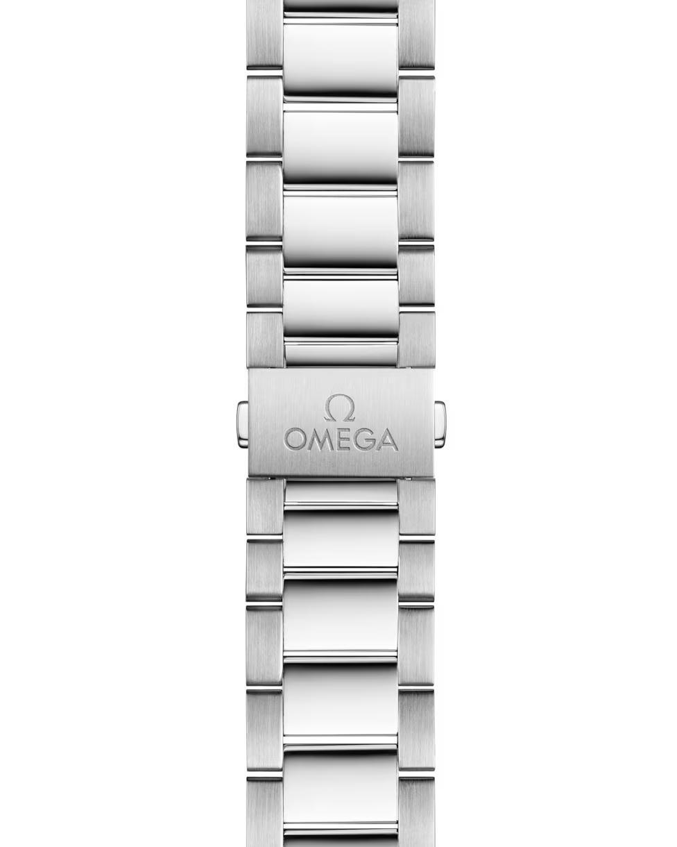 The striking blue dial features luminous silver-tone hands and index hour markers, accompanied by a date display at 6 o’clock. Powered by the advanced Omega Calibre 8938 automatic movement, this chronometer-certified watch offers up to 60 hours of power reserve and supports functions such as World Time, GMT, and dual time zone tracking.