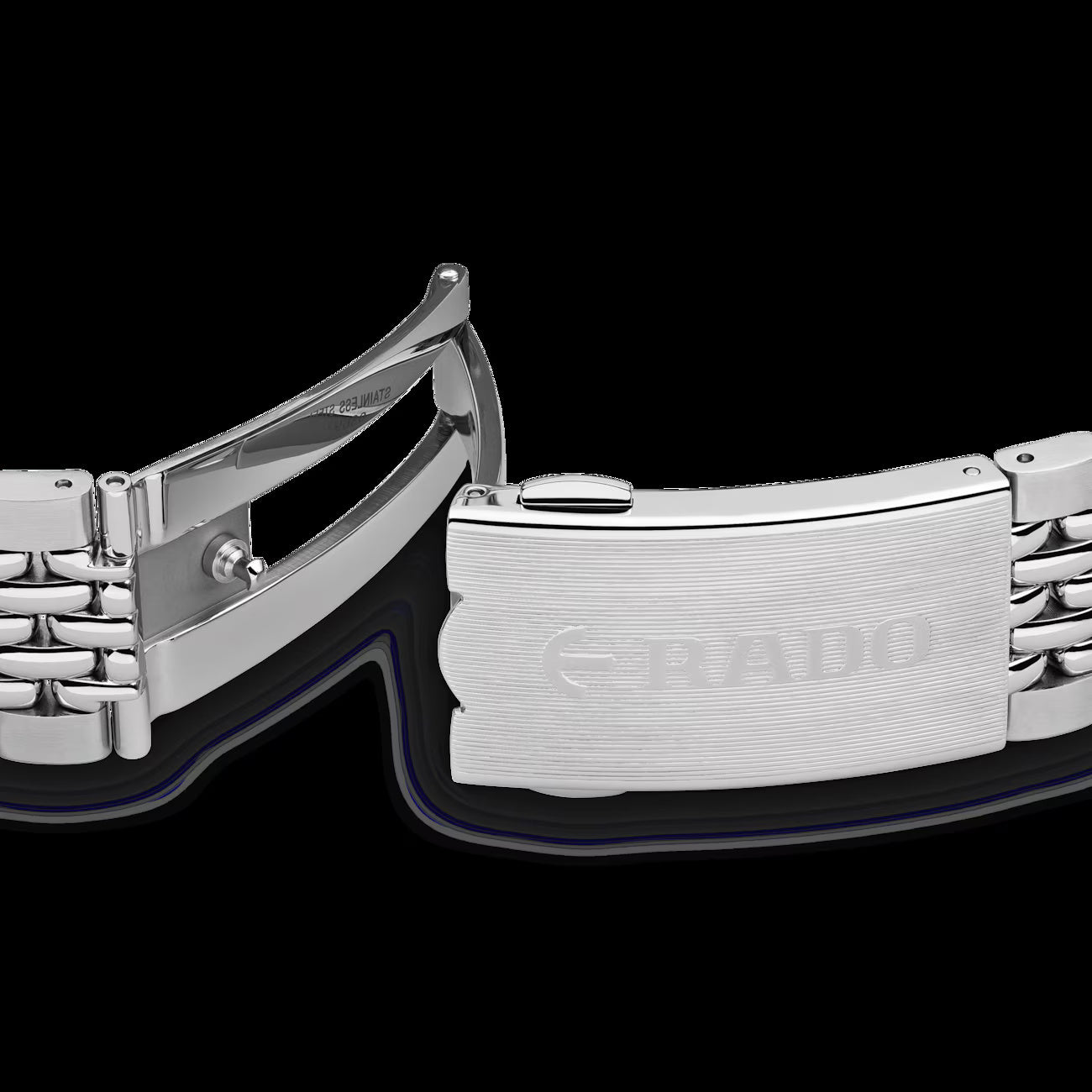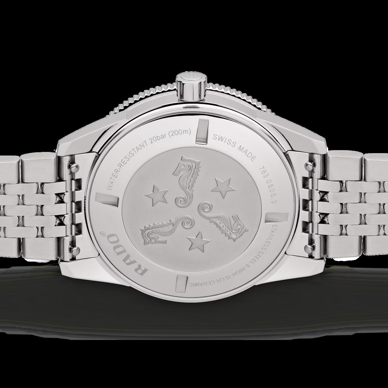 The silver-tone stainless steel bracelet with a fold-over clasp adds a classic, versatile finish, while the screw-down crown enhances water protection and reliability. A true representation of Rado’s Swiss precision and adventurous spirit, this watch combines sophistication with function.