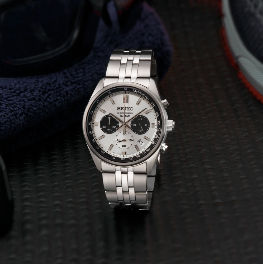 The Seiko SSB425P1 Chronograph is a refined sport watch designed for precision, durability, and everyday elegance. Featuring a crisp white dial, Japanese quartz movement, and a durable stainless steel case and bracelet, this timepiece blends functionality with a timeless silhouette.