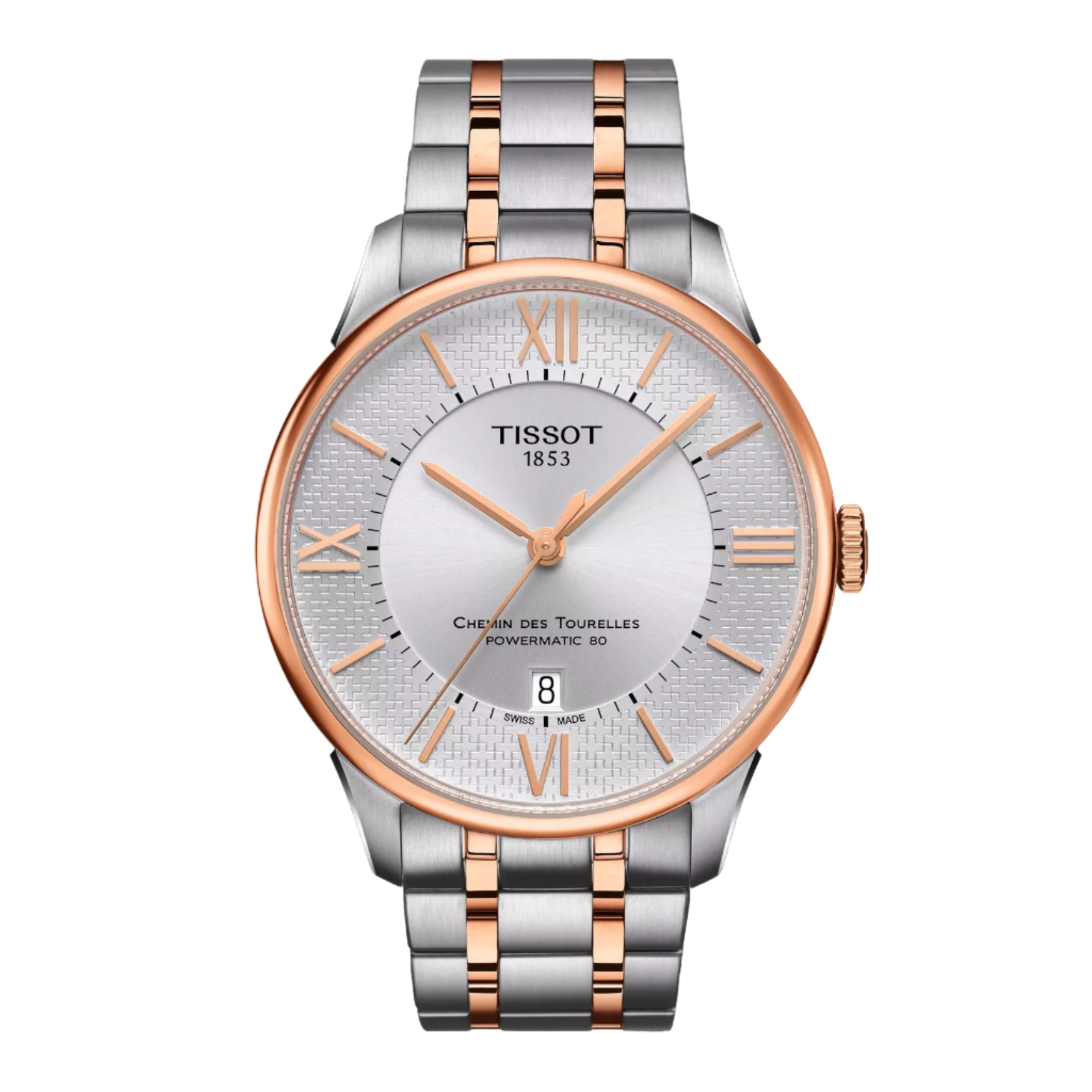 Refined with a touch of rose gold sophistication, the Tissot Chemin des Tourelles T099.407.22.038.01 captures the essence of timeless Swiss watchmaking. Housed in a 42 mm stainless steel case with a fixed rose gold PVD bezel, this watch makes a polished impression on any occasion.