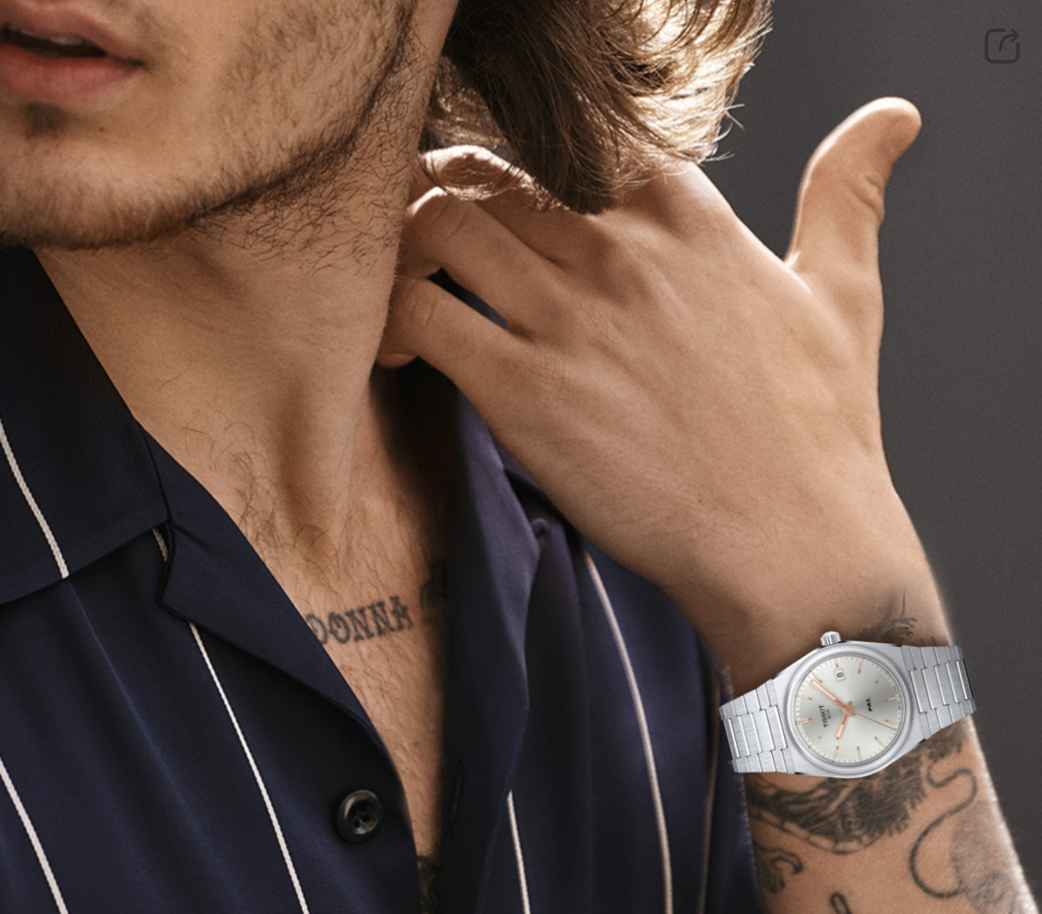 Discover refined simplicity with the Tissot PRX Quartz, a direct descendant of the 1970s original that balances vintage style and modern precision. The 40 mm tonneau-shaped case in 316L stainless steel and its integrated bracelet are meticulously brushed, with polished chamfers catching the light for a subtle contrast.
